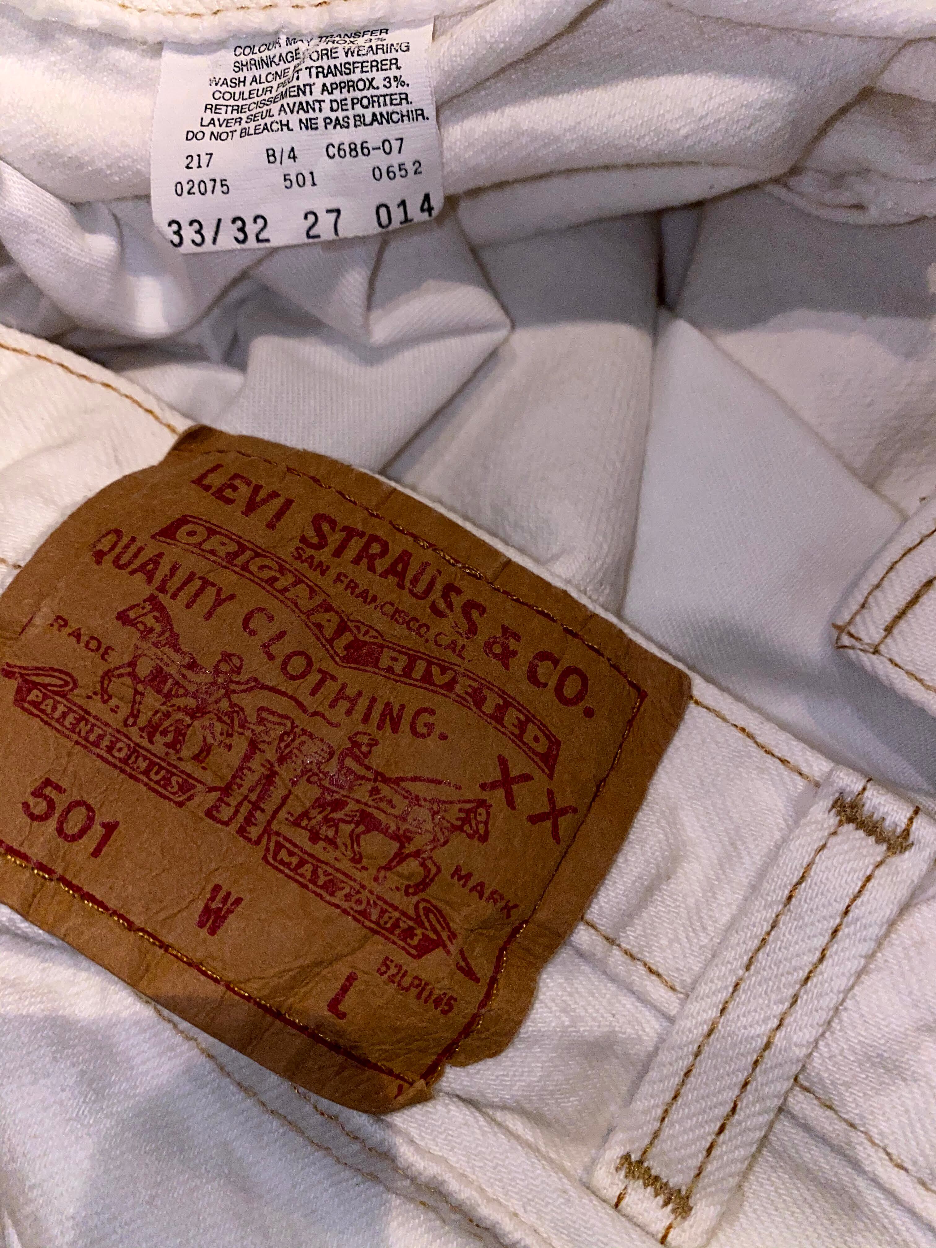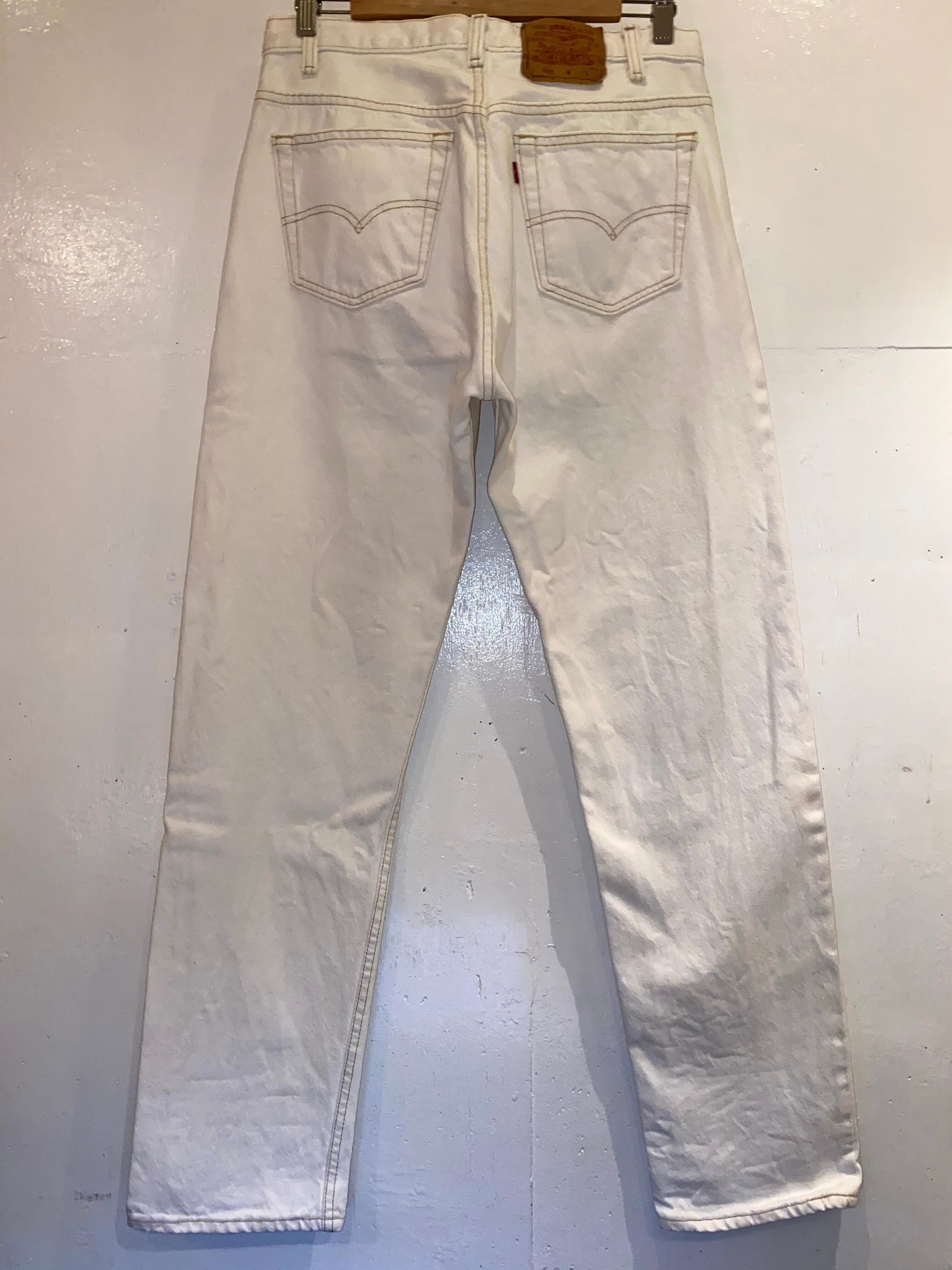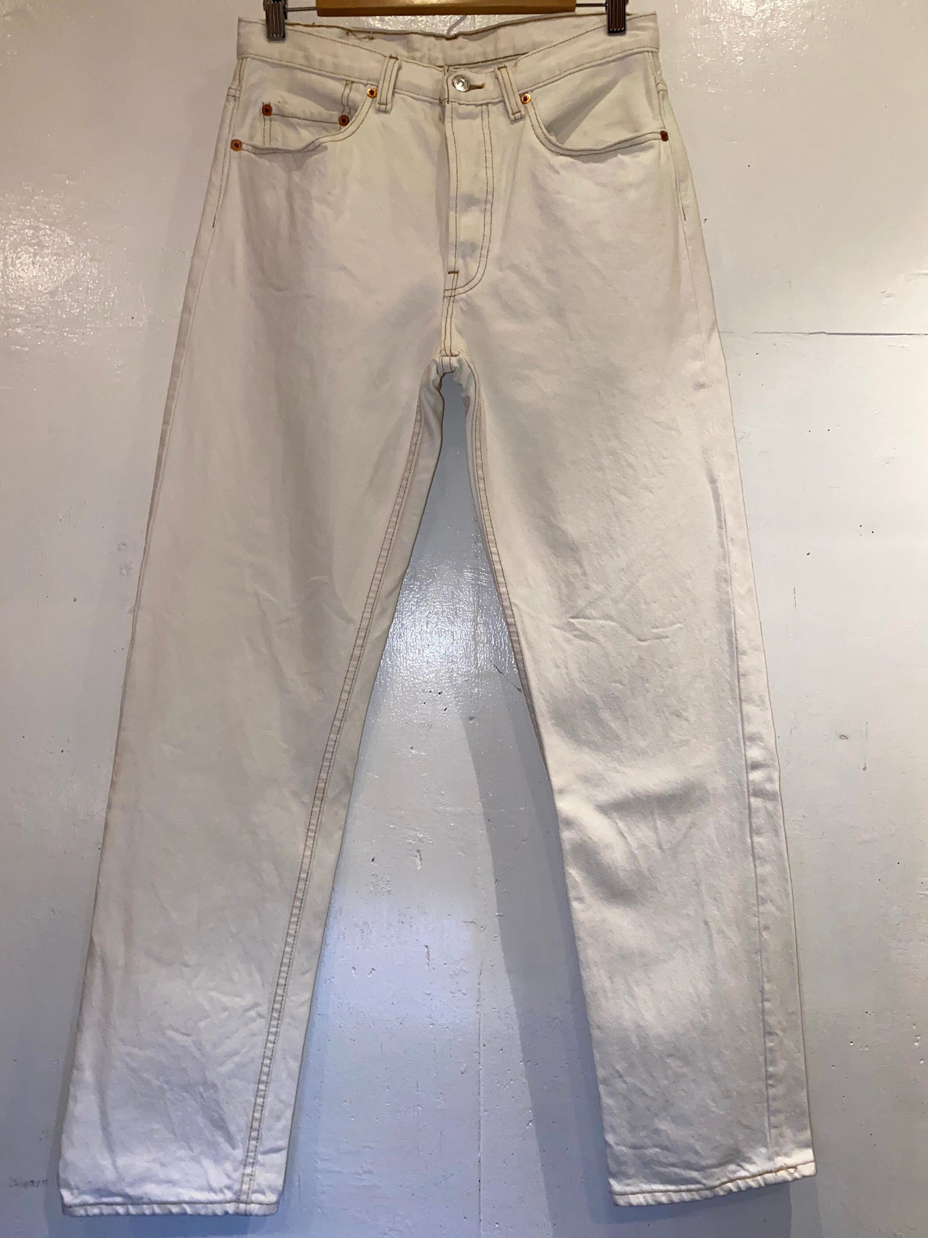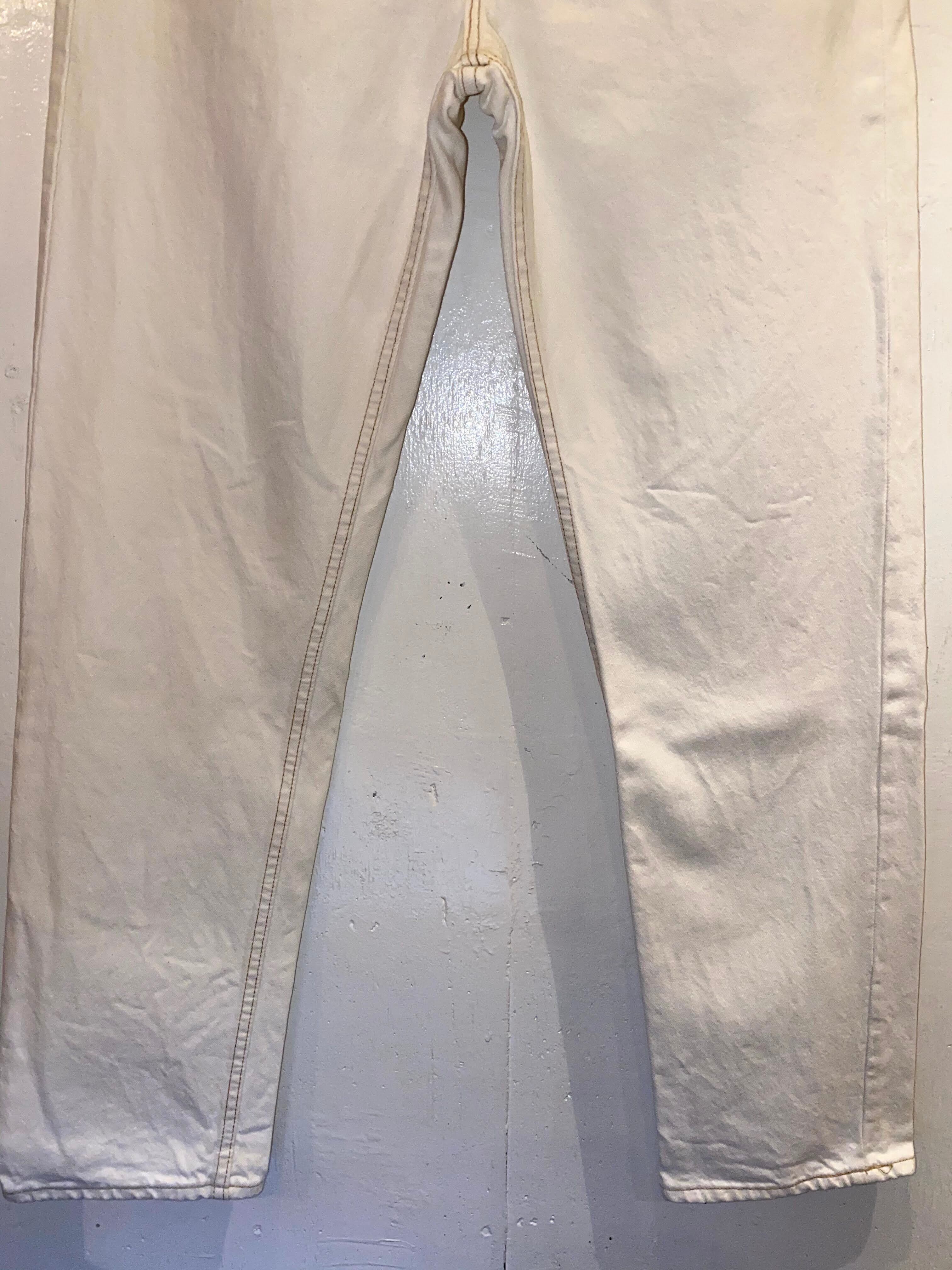 丈詰めされており実寸レングス30くらい、ウエストは縮んで31くらいです。程よい着用感はありますが比較的綺麗で、古着慣れされている方でしたら問題なく着用していただけると思います。