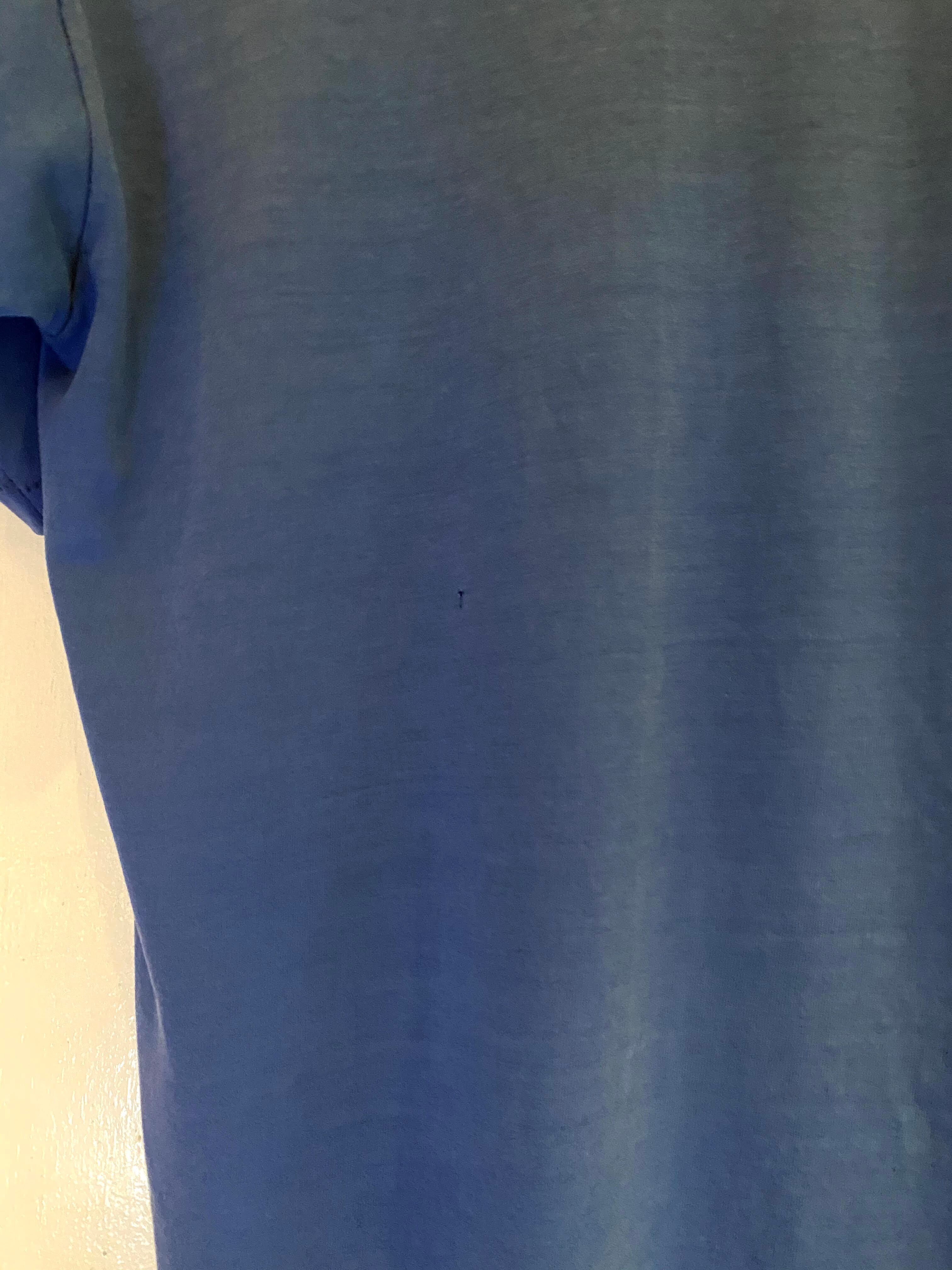 首リブ・腹部にピンホール、背中に小さい引っ?き穴、胸部に薄いシミがあります。着用感はありますが古着慣れされている方でしたら問題なく着用していただけると思います。
