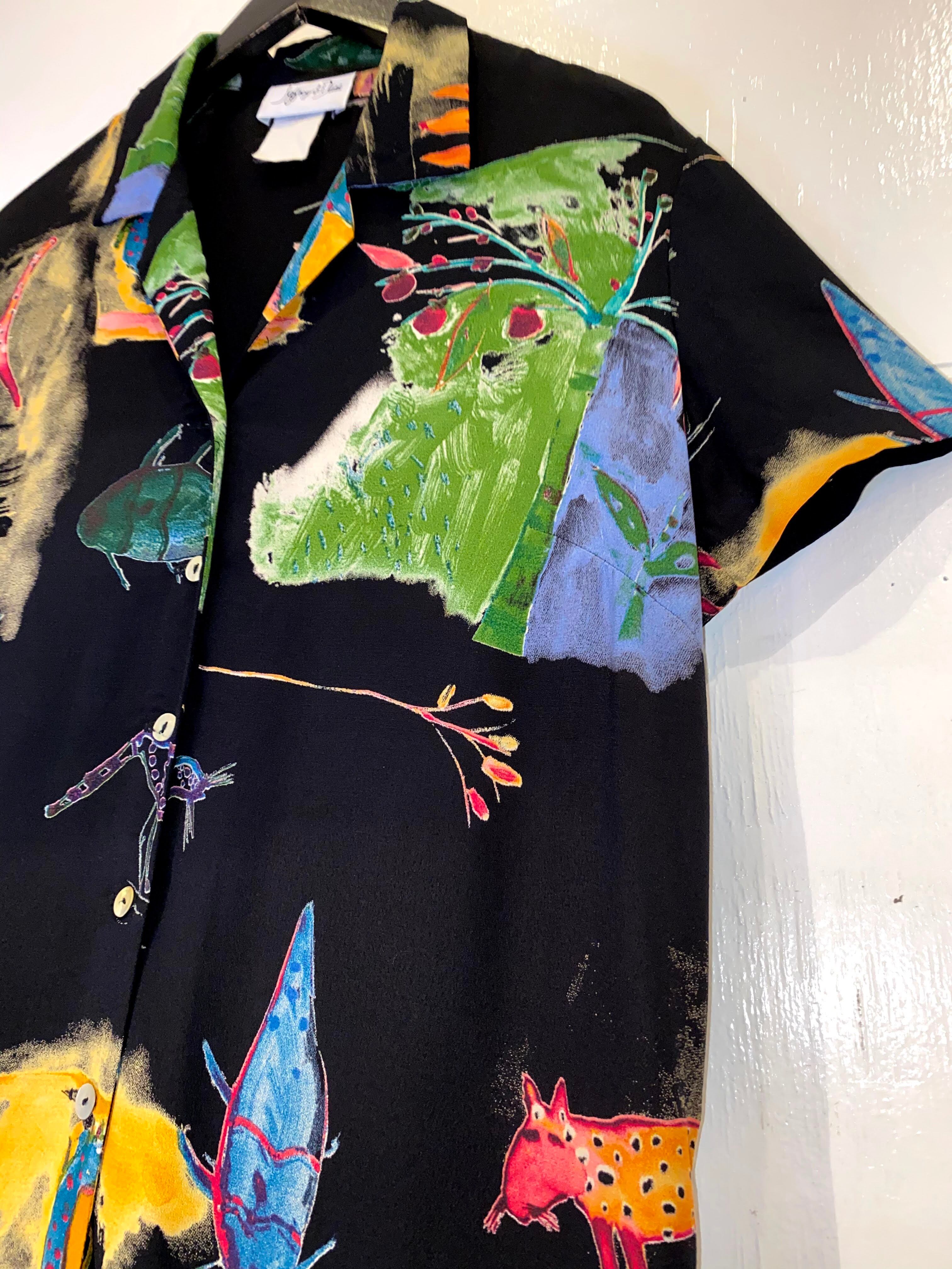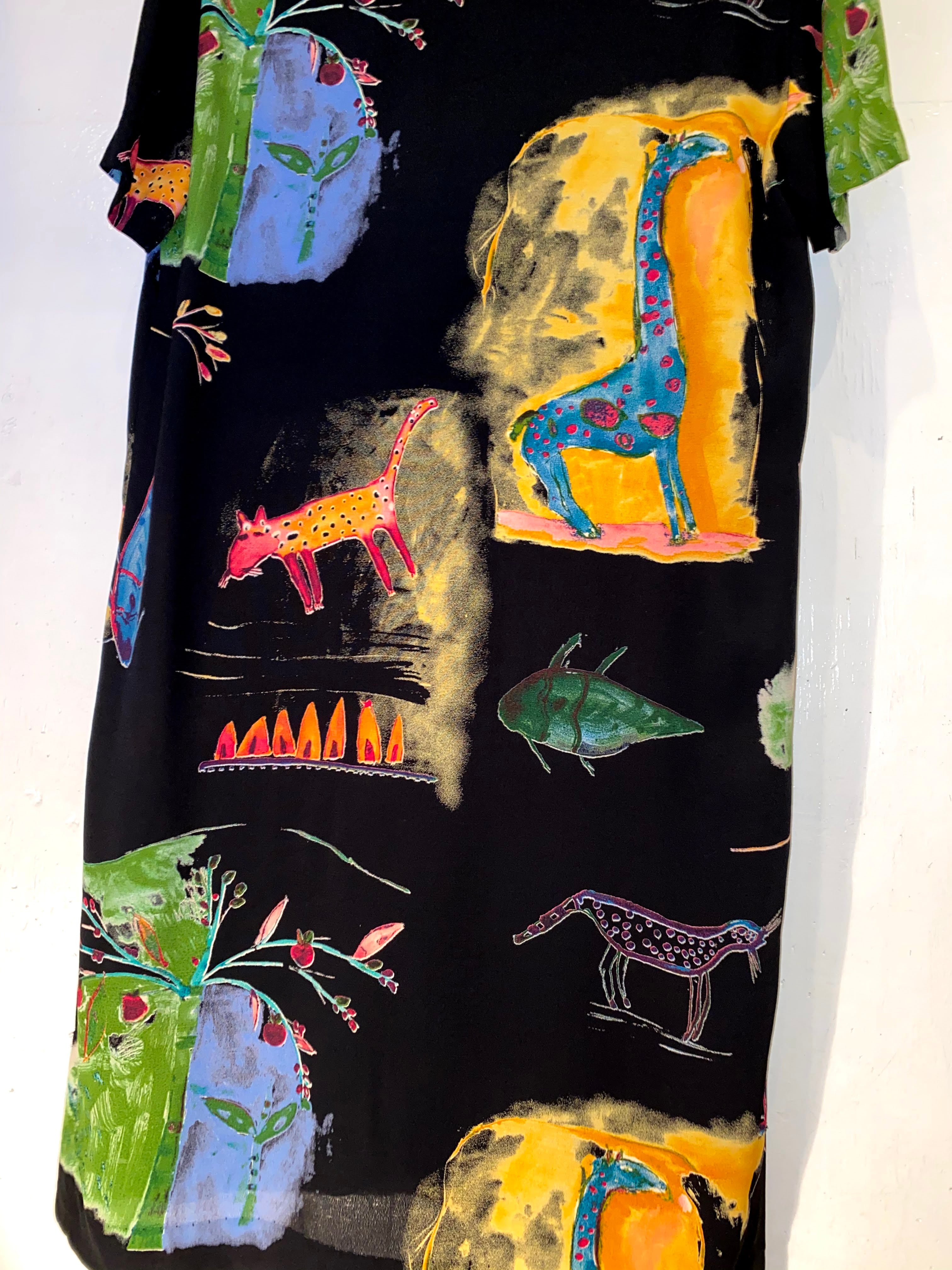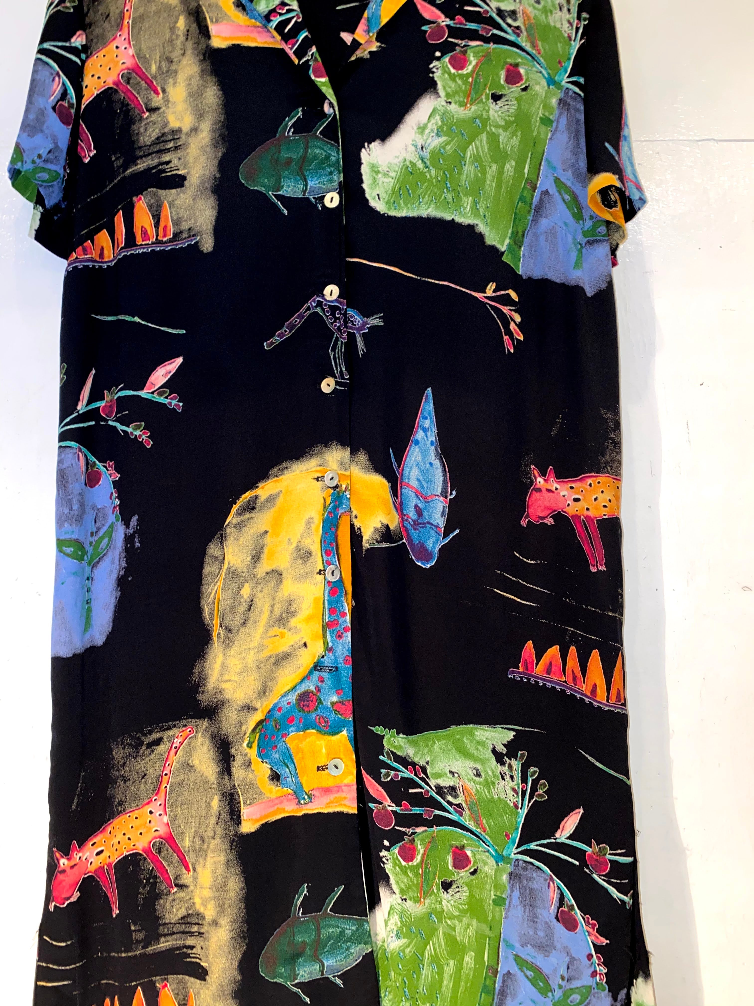 黒ベースのレーヨンボディに謎の動物達。