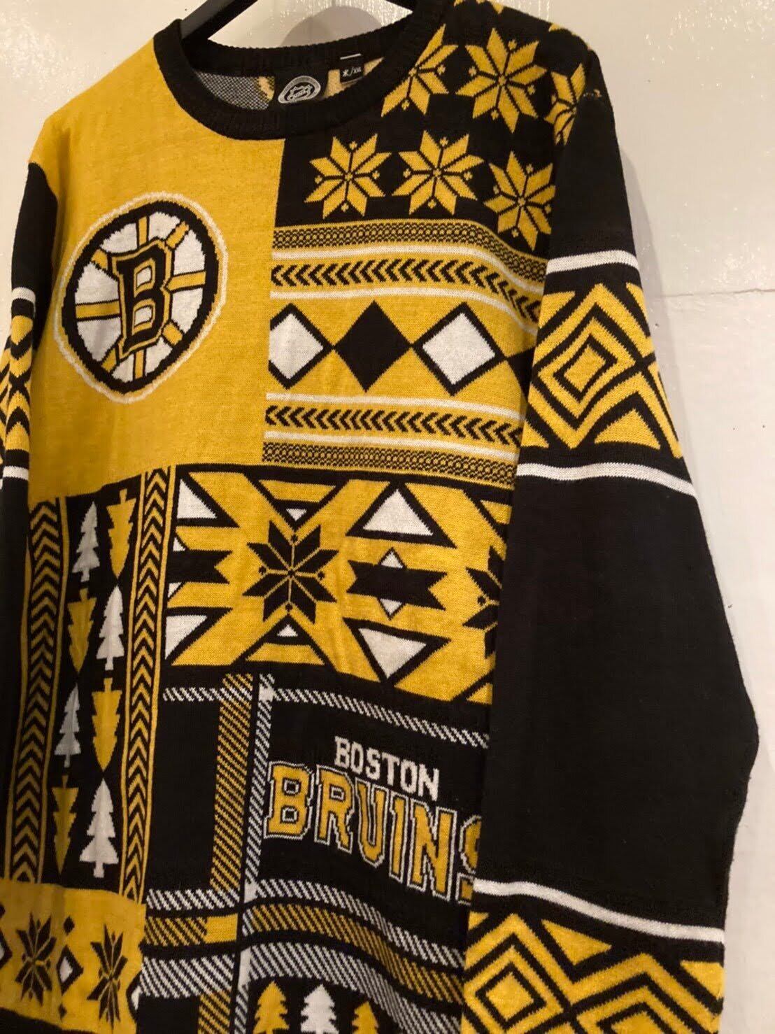 NHLのOFFICIAL物、BOSTON BRUINSの総柄ニットになります。